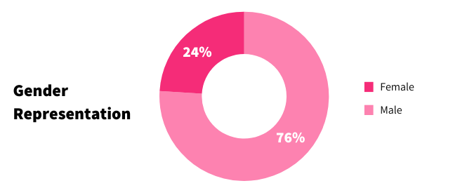 Our overall gender representation has slightly increased from last year, with women making up 24% of our workforce, up 1% from 2024. We’ve seen a small improvement in non-development roles (44%, up from 43%), but a slight decline in Development roles (16%, down from 17%). This underrepresentation, particularly in Development, continues to influence our gender pay gap.